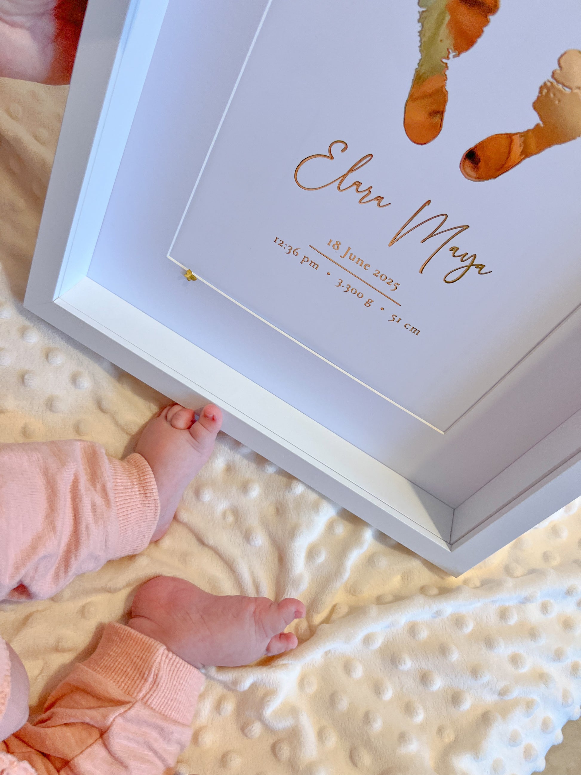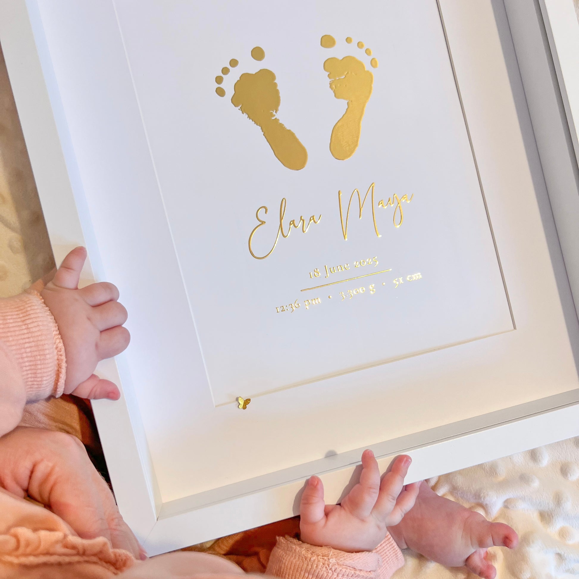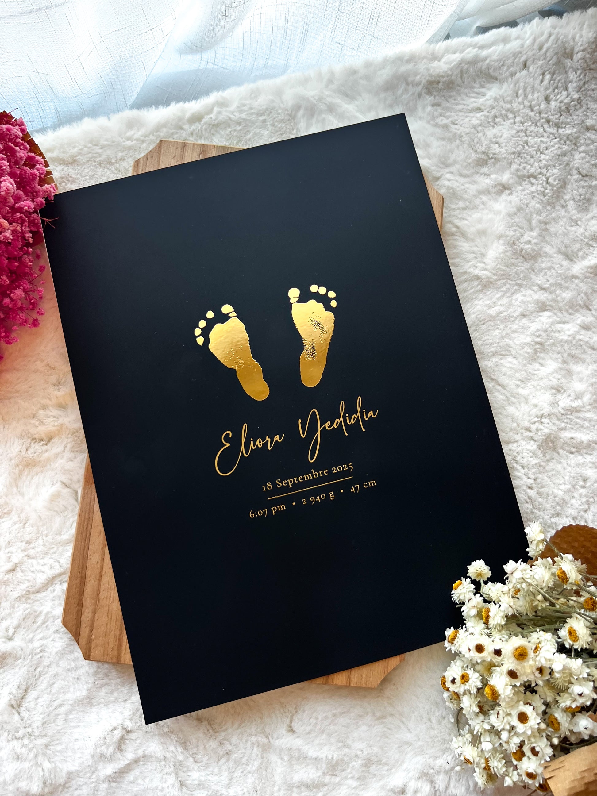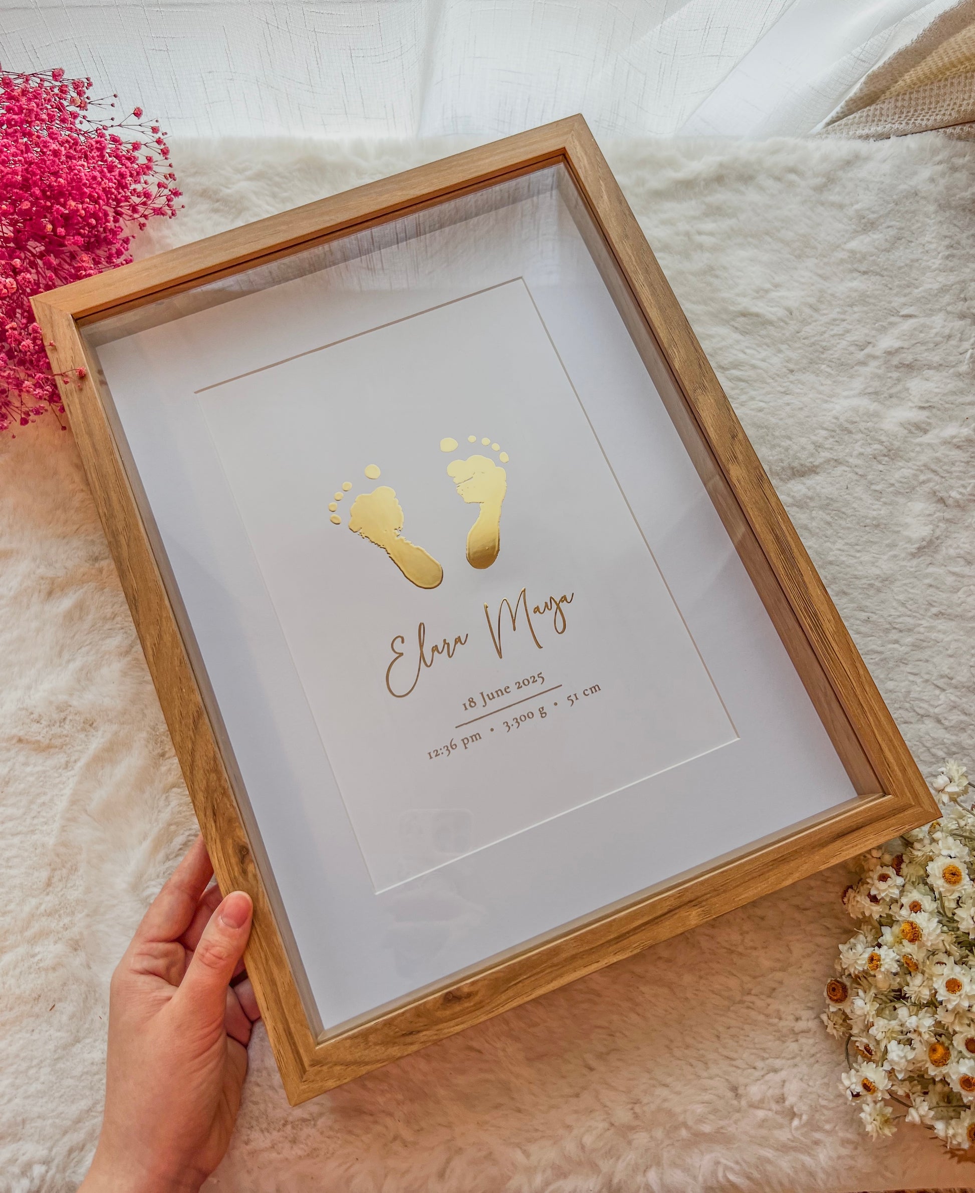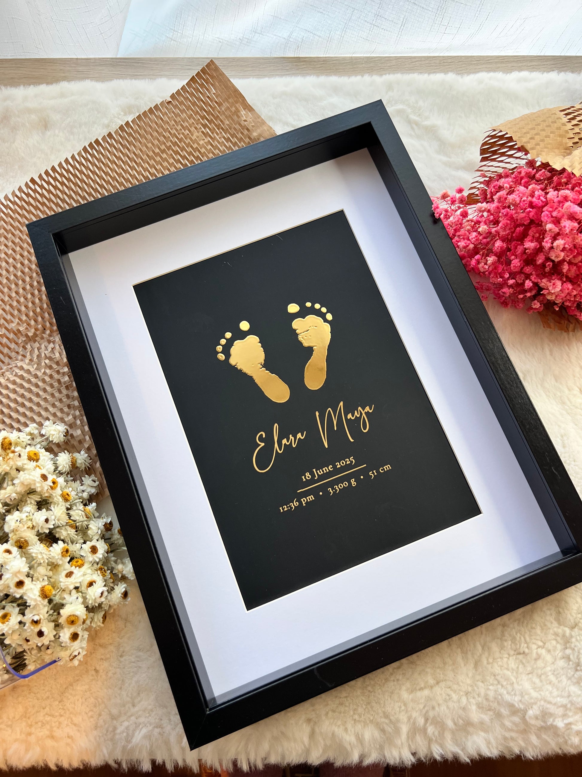 Urmele bebelușului tău sunt păstrate exact așa cum sunt - la dimensiunea lor reală , fiecare curbă și linie fiind surprinsă cu grijă. Apoi le transformăm în folie aurie 3D strălucitoare, astfel încât detaliile delicate sunt nu doar vizibile, ci și radiante. Aceasta nu este o imprimare sau o copie; este amprenta reală a copilului tău, transformată într-o amintire atemporală. Fiecare cadru este o promisiune că acei pași mici, care trec atât de repede, nu se vor pierde niciodată în memorie.