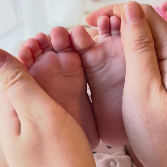 - Press Gently — Place your baby’s foot pr hand on the clean surface of the pad. No ink ever touches the skin.
